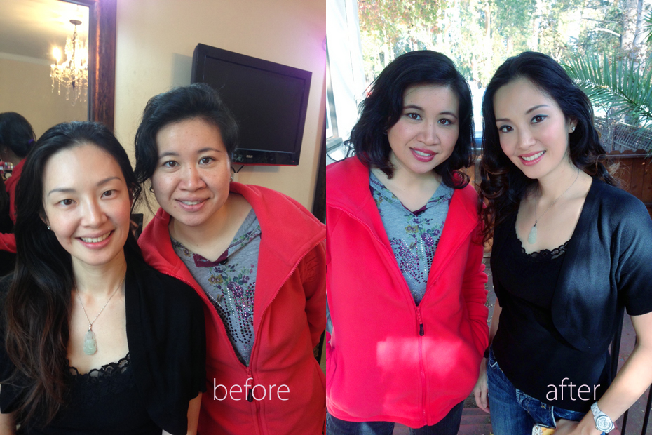 Rachel was a Wowpretty bride in 2007, we still remember every moment of her wedding day. Time flies but we are honored as always to take care of her makeup lesson today. A beautiful young mom, busy schedule with 2 kids, she came to WP makeup class and want to achieve her night makeup look and makeup style for her sister’s wedding this November. This is a before / after picture, the Makeup done by Rachel